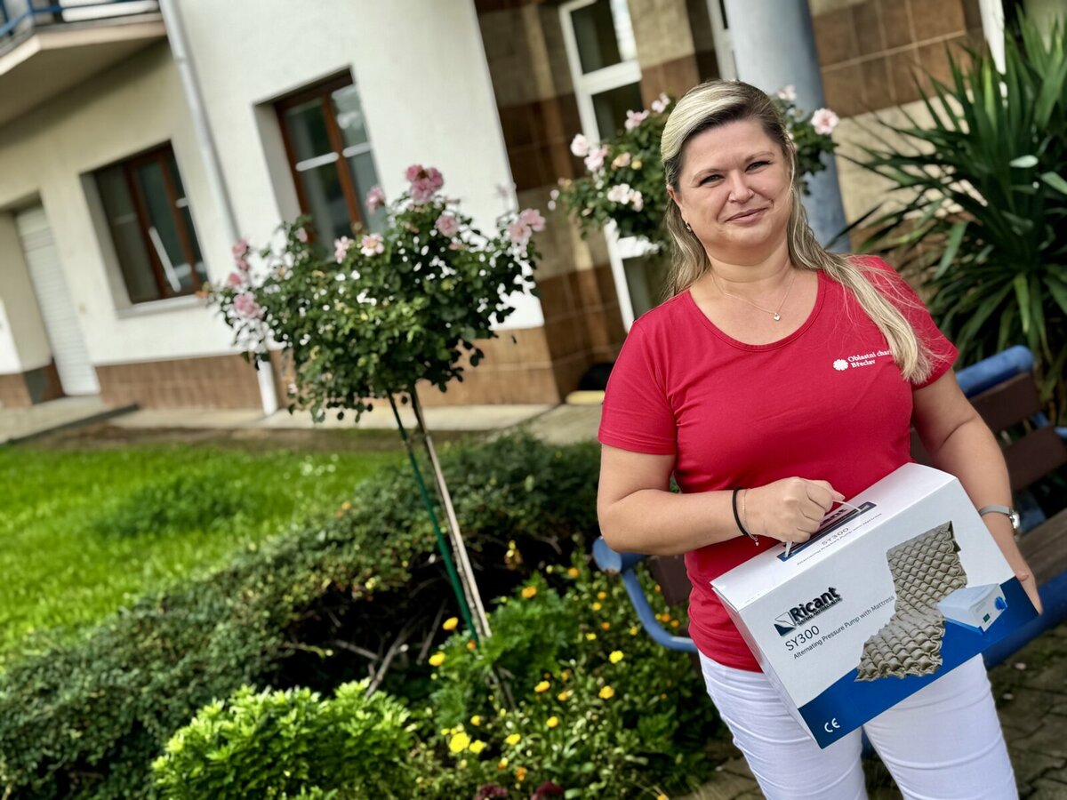 Vaše dary konkrétně pomáhají: pořízení vysokého pultového chodítka, které pacientům usnadňuje pohyb a přináší jim větší samostatnost, WC vozíku zajišťujícímu bezpečnou a komfortní hygienu, antidekubitní matrace s kompresorem, která předchází bolestivým proleženinám, a kolečkových infuzních setů s regulací průtoku, jež našim sestrám umožňují přesné a bezpečné podávání léčiv. ❤️ Každá z těchto pomůcek zvyšuje kvalitu péče, usnadňuje práci zdravotních sester a zlepšuje každodenní život pacientů i jejich blízkých.
